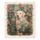Elegant vintage floral design with a golden retriever at the centre, inspired by the style of William Morris.