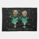 This kitchen towel features golden retrievers dressed as Irish stepdancers. The message reads, "Gettin' Jiggy With It".