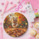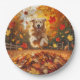 Golden Retriever Jumping In Leaf Pile Paper Plate