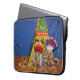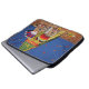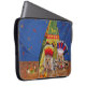 This laptop sleeve features golden retrievers dressed as Native Americans by a teepee.