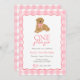Celebrate your little one’s “one golden year” with this sweet puppy themed invitation! Featuring a playful golden retriever wearing a pink gingham bow and a matching pink gingham border, this design is perfect for a first birthday party. Easily customise the name, date, and party details right in your browser—no special software needed. A charming choice for dog lovers and darling birthday celebrations alike!