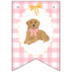 Celebrate your little one’s special day with this charming pink gingham “Happy Birthday” banner, featuring adorable golden retriever illustrations and soft pastel details. The classic gingham pattern adds a timeless feel—perfect for creating a sweet and welcoming party backdrop.