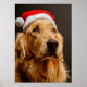 Golden Retriever wearing santa hat