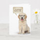 Cute golden retriever puppy wearing glasses on white with speech bubble for 66th birthday humour.
