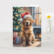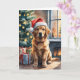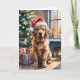 Golden Retriever Puppy by Christmas Tree Holiday Card