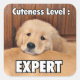 These stickers feature a photograph of an adorable golden retriever puppy's face nestled into the fur of an older dog, along with the caption, "Cuteness Level: Expert."