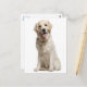 Brighten someone's day with a handwritten note! This adorable postcard features an image of a happy Golden Retriever puppy dog highlighted against a creamy white background. She is ready to help you send smiles to friends and family.