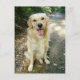 Aww...who can resist the sweet face of a Golden Retriever Puppy Dog? This cute canine postcard features a portrait of a happy smiling Golden Retriever pup sitting on a woodsy trail.