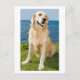 Brighten someone's day with a handwritten note! This adorable canine postcard features an image of a happy Golden Retriever puppy dog sitting in the green grass by the blue lake in the background. He is ready to help you send smiles to friends and family.