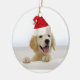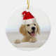 A cute Golden Retriever Puppy dog wearing red Santa Hat