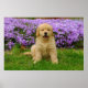 Golden Retriever Puppy in bed of Lavender Phlox Poster