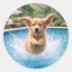 Golden Retriever Puppy Pool Plunge Classic Round Sticker