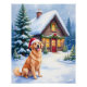 Golden Retriever Rustic Cabin Santa Hat Christmas Poster