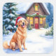 Golden Retriever Rustic Cabin Santa Hat Christmas Square Sticker