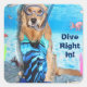 These stickers feature a golden retriever as a snorkeler under the sea. The message reads, "Dive Right In!".