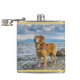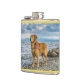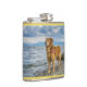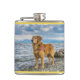Golden Retriever standing on the blue ocean rocky Hip Flask