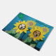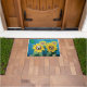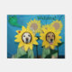 These golden retrievers are dressed as sunflowers. The message reads, "Welcome!".