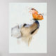 A Golden Retriever, with its trusting, gentle temperament, saying hello to a butterfly.