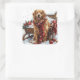 Golden Retriever with Festive Scarf by a Sleigh Square Sticker