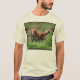 A soaking wet Golden Retriever brings back a mallard duck on this shirt.