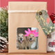 These stickers feature a photograph of two smiling golden retriever dogs standing in a doorway. One is wearing a pink flower headband!