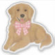 This adorable vinyl sticker features a sweet golden retriever wearing a pink gingham bow—perfect for laptops, water bottles, notebooks, and more. Durable and water-resistant, it’s a cute way to add a little puppy love to your everyday essentials or party favours.