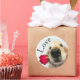 Add a little golden happiness to your cards and packages this Valentine's Day, or any day! These stickers feature a photograph of a pensive golden retriever dog who is holding a single red rose in his mouth. Customisable text says "love."