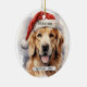 A sweet golden Retriever with a Santa cap is the perfect ornament to personalise for your own golden buddy with their name and Christmas year