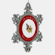 This snowflake Christmas tree ornament has five golden rings tied together with a red ribbon and a sprig of holly at the centre with the phrase “On the fifth day of Christmas” in white around the red outer ring. Ornaments with the other 11 days of Christmas are also available in my store. From my original digitally created image.
