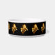 This is a heavy, durable bowl decorated with Tibbies of many colors, the perfect size for hungry/thirsty Tibs. The design is interesting and printing clear.