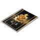 A beautifully crafted golden rose surrounded by an intricate ornamental design, featured against a dark background. The artwork highlights luxury, elegance, and the beauty of metallic tones.
