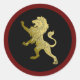 Golden Royal Lion on Black Burgundy Frame Classic Round Sticker