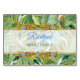 Royal golden peacock feathers on a tropical green leaf background sprinkled with exotic feathers wedding collection pattern for a wedding or decor design