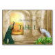 White and blue-green royal peacock wedding fantasy scenery in a tropical temple surrounded by greenery to personalise number and name cards for each quest on the table.
