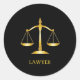 Golden Scales of Justice Lawyer on Black Classic R Round Sticker