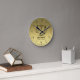 Elegant personalise clock with scales of justice symbol on graphic golden gradient background.