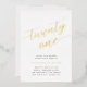 Celebrate her milestone birthday with these chic 21st birthday party invitations featuring "twenty one" in modern gold foil hand sketched script lettering. Personalise with your party details beneath. A unforgettable, luxe choice for fabulous 21st birthday celebrations.