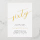 Celebrate her milestone birthday with these chic 60th birthday party invitations featuring "sixty" in modern gold foil hand sketched script lettering. Personalise with your party details beneath. A unforgettable, luxe choice for fabulous 60th birthday celebrations.