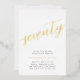 Celebrate her milestone birthday with these chic 70th birthday party invitations featuring "seventy" in modern gold foil hand sketched script lettering. Personalise with your party details beneath. A unforgettable, luxe choice for fabulous 70th birthday celebrations.