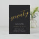 Celebrate her milestone birthday with these chic 70th birthday party invitations featuring "seventy" in modern gold foil hand sketched script lettering. Personalise with your party details beneath. A unforgettable, luxe choice for fabulous 70th birthday celebrations.