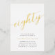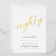 Celebrate her milestone birthday with these chic 80th birthday party invitations featuring "eighty" in modern gold foil hand sketched script lettering. Personalise with your party details beneath. A unforgettable, luxe choice for fabulous 80th birthday celebrations.