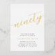 Celebrate her milestone birthday with these chic 90th birthday party invitations featuring "ninety" in modern gold foil hand sketched script lettering. Personalise with your party details beneath. A unforgettable, luxe choice for fabulous 90th birthday celebrations.