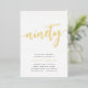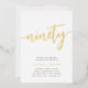 Celebrate her milestone birthday with these chic 90th birthday party invitations featuring "ninety" in modern gold foil hand sketched script lettering. Personalise with your party details beneath. A unforgettable, luxe choice for fabulous 90th birthday celebrations.