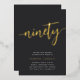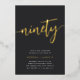 Celebrate her milestone birthday with these chic 90th birthday party invitations featuring "ninety" in modern gold foil hand sketched script lettering. Personalise with your party details beneath. A unforgettable, luxe choice for fabulous 90th birthday celebrations.