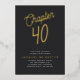 Show your loved ones how much you appreciate their presence with this luxurious and sophisticated Invitation! This golden script chapter 40 40th Birthday party foil invitation will make your family and friends feel special, and set the tone for an unforgettable milestone celebration. With stunning golden foil on luxuriously thick black paper, you won't be disappointed with this spectacular invite. Make your 40th birthday celebration one to remember with this beautiful foil invitation!