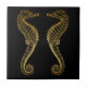 Golden Seahorse Tile beautiful Silhouette of sea creature in gold on black background.