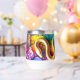 "This stunning, high-definition digital artwork features a metallic golden snake elegantly coiled against a richly detailed background. The background is composed of a mosaic-like texture where each scale or tile bursts with a different color from the rainbow spectrum, creating a vibrant and psychedelic effect. The contrast between the sleek, reflective gold and the intense, jeweled colors makes this piece truly mesmerizing. This graphic is ideal for smartphone cases, upscale art prints, luxury textile patterns (e.g., silk scarves), T-shirt designs seeking a bold statement, or any product intended to evoke mystery, luxury, and vibrant fantasy."
