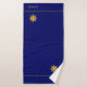 Elegant golden ship steering wheel on navy blue Bath Towel Set. Text can be personalised.