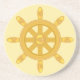 Golden ship wheel on champagne beige background coaster