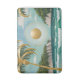 Dive into a fantastical tropical paradise where the sun's golden light transforms the world. This whimsical artwork captures a serene beach scene, where the sand shimmers with a soft, warm glow. Towering palm trees and majestic cliffs are not just silhouettes against the sky, but are rendered in pure gold, reflecting the radiant brilliance of the sun. The water gently laps at the shore, inviting you to step into a world of pure imagination and escape.